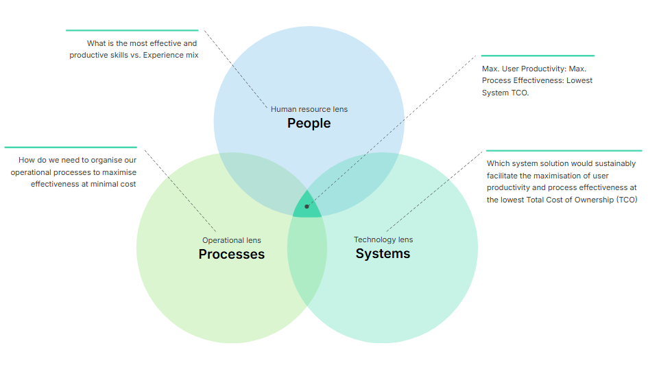 Key factors to consider when selecting the optional mix of People, Processes & Systems to empower the achievement of the Organisation’s objectives